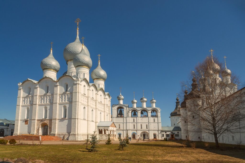 Единственный действующий собор Ростовского кремля расположен на Соборной площади и был построен раньше самой крепости — в начале 1500-х годов. Среди его особенностей — резные белокаменные украшения и отдельно стоящая звонница. Она была построена в 1682–1687 годах, и большинство колоколов на ней сохранилось с тех времен. Всего их на звоннице 15, самый большой из них имеет свое имя — Сысой и весит 32 тонны.